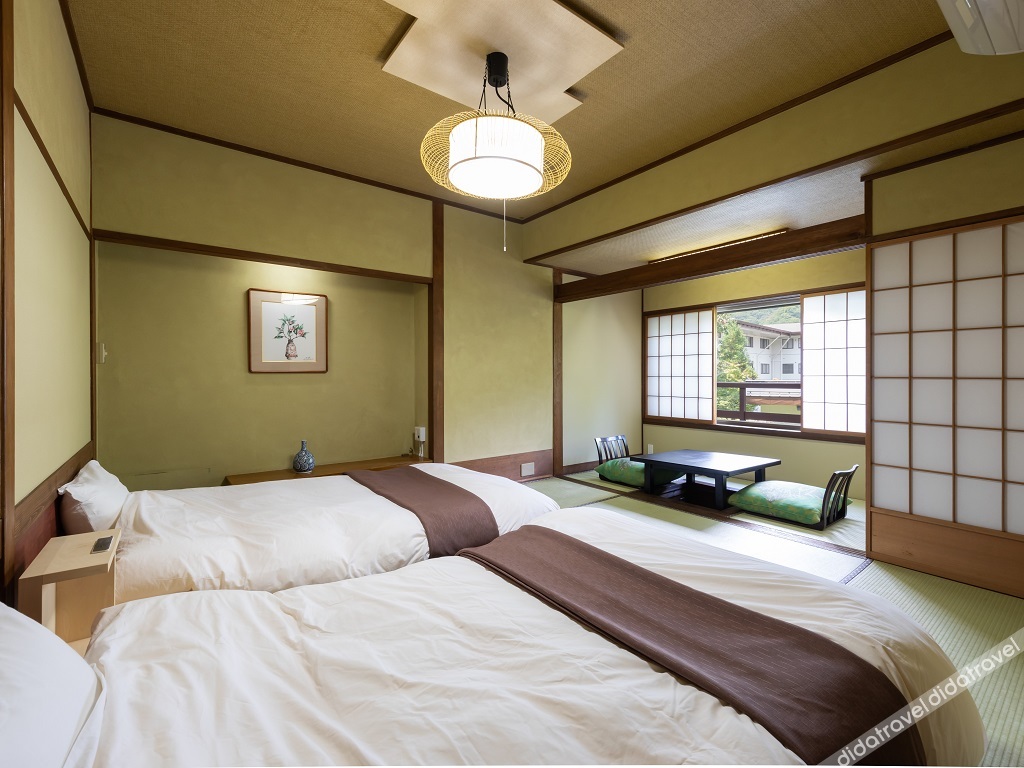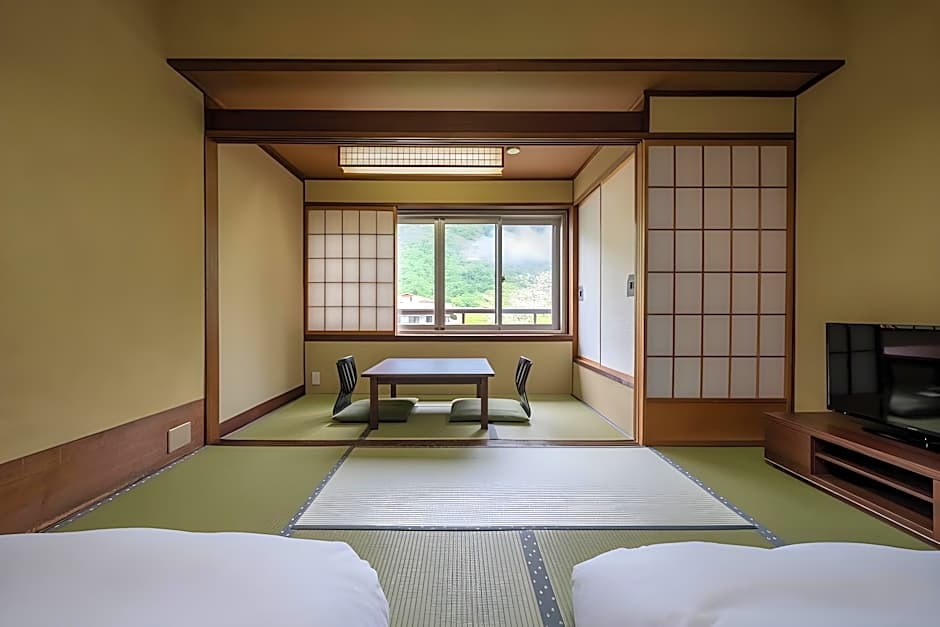 This spacious suite comes with 1 living room, 2 separate bedrooms and 1 bathroom with a bath and a shower. The suite has tatami floors, a seating area with a flat-screen TV, air conditioning, a tea and coffee maker as well as garden views. The unit has 4 beds and 4 futons.